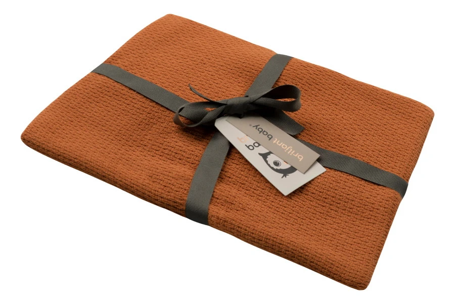 Onder deze prachtige zomer ledikantdeken van het merk Briljant komt je kleintje helemaal tot rust. Deze comfortabele ledikantdeken van 100 x 150 cm staat garant voor heerlijk slapen. Een heerlijk deken geschikt voor in de zomer, omdat de katoenen stof ademt en vocht opneemt. De deken is in de kleur terracotta.Â