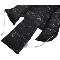 Dit babynestje is voorzien van een stijlvol marmer motiefje en gemaakt van kwalitatief zeer goed materiaal. De buitenkant van dit nestje is gemaakt van 100% katoen en de vulling is gemaakt van 100% polyester. Mocht het nestje vies zijn geworden dan kan je hem met de hand wassen op 40ºC. Dankzij de koordjes kun je de uiteinden van het babynestje makkelijk dicht binden. Het extra lapje met drukkers zorgt ervoor dat je kleine niet bij de touwtjes kan.Â