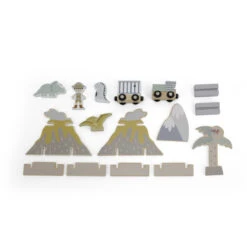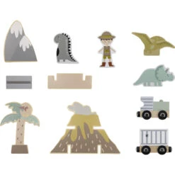 De set bestaat uit 16 onderdelen en is te gebruiken in combinatie met de . Met de 16 onderdelen tover je de basis treinbaanset om tot een echt dinosaurus tijdperk. Hij is gemaakt van hout en is geschikt voor kindjes vanaf 3 jaar.Â