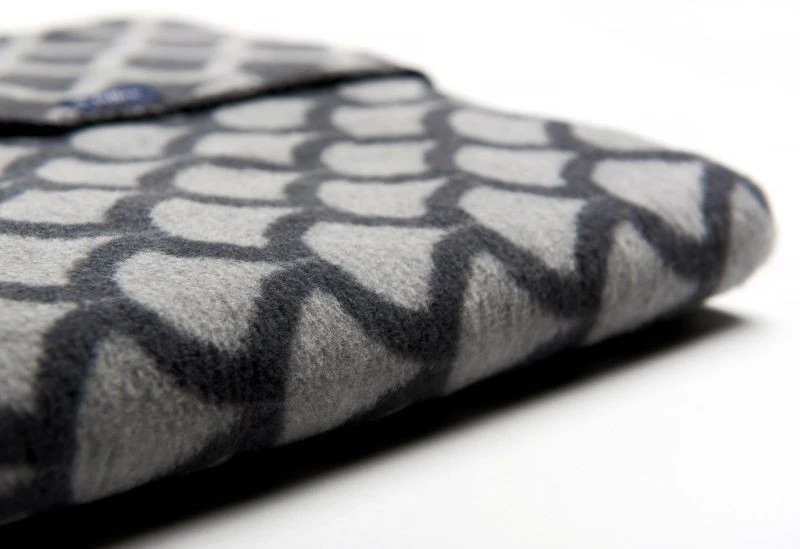 Het wiegdeken is aan de ene kant grijs met een ‘schubbenmotief’ van halve cirkels in antraciet en aan de andere zijde zijn de kleuren omgekeerd. Het dekentje heeft de afmetingen 75 x 100 cm, dus past perfect in de meeste wiegjes!Â
