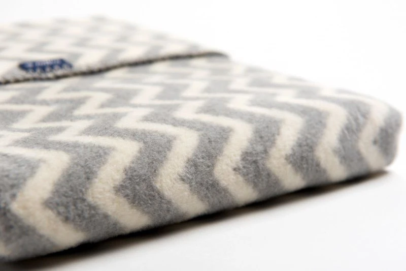 Het wiegdeken is aan de ene kant grijs met een stijlvol zigzagmotief in ecru en aan de andere zijde zijn de kleuren omgekeerd. Het dekentje heeft de afmetingen 75 x 100 cm, dus past perfect in de meeste wiegjes!Â